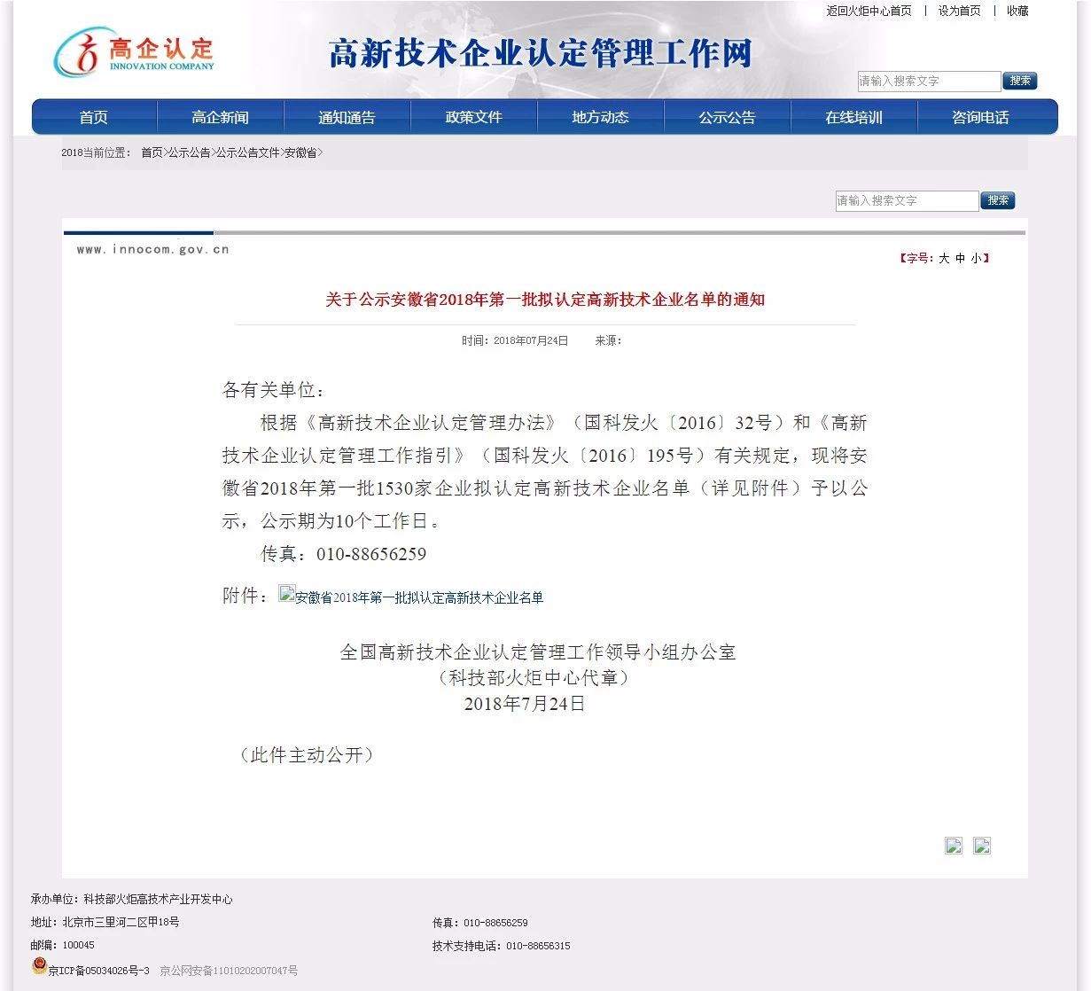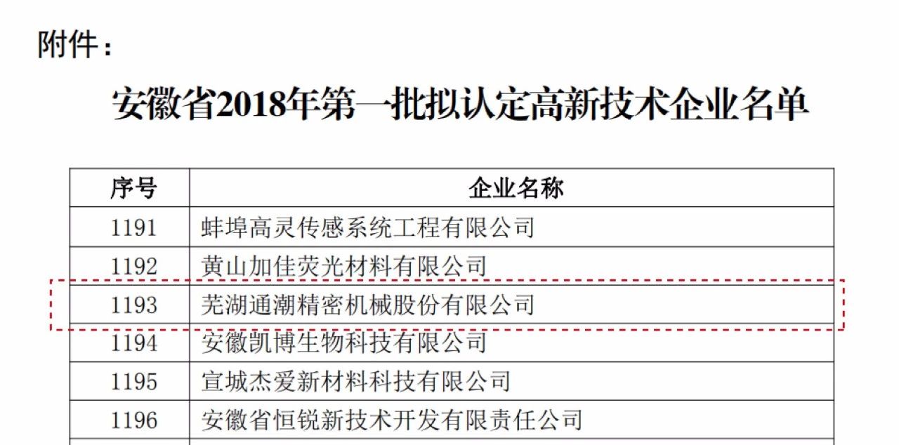2018年7月24日,國家高新技術(shù)企業(yè)認(rèn)定管理官網(wǎng)公示了安徽省2018年第一批認(rèn)定高新技術(shù)企業(yè)名單,蕪湖通潮榜上有名。